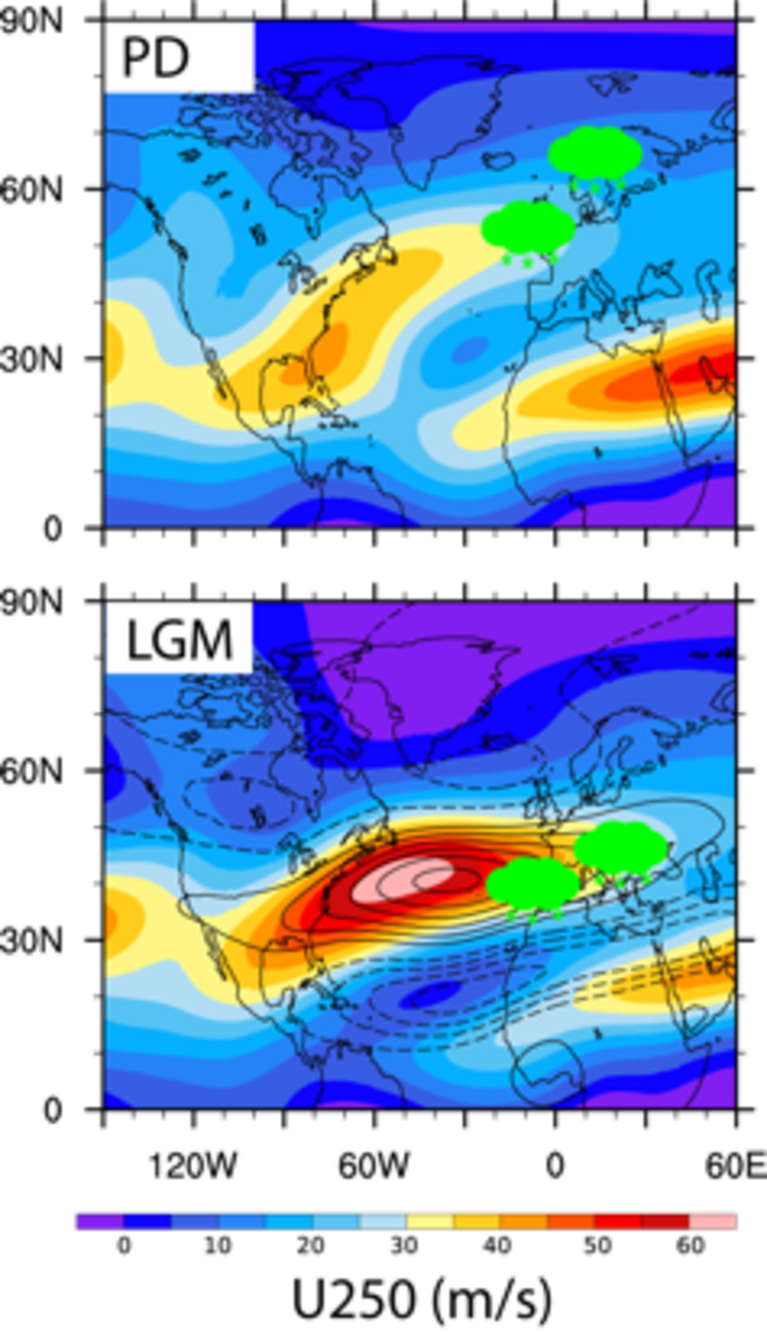 In a new study, the scientists have now managed to simulate the jet stream’s behaviour during glacial and interglacial periods and analyse it more accurately thanks to a new method that is able to display the jet stream’s fluctuations during the winter months with greater precision. The team simulated the last glacial maximum around 21,000 years ago, as well as less extreme glacial period 65,000 years ago.