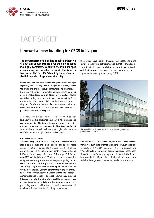 An updated fact sheet on "Innovative new building for CSCS in Lugano" is now available in English, Italian and German.