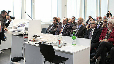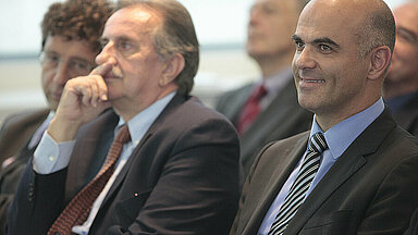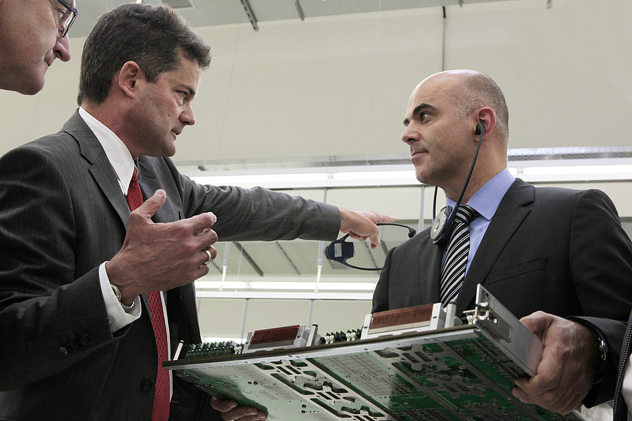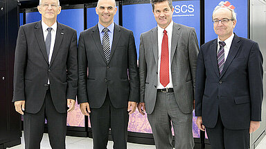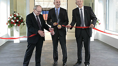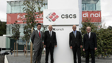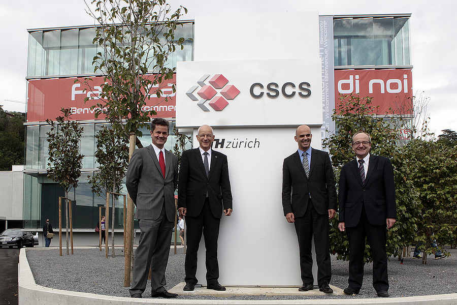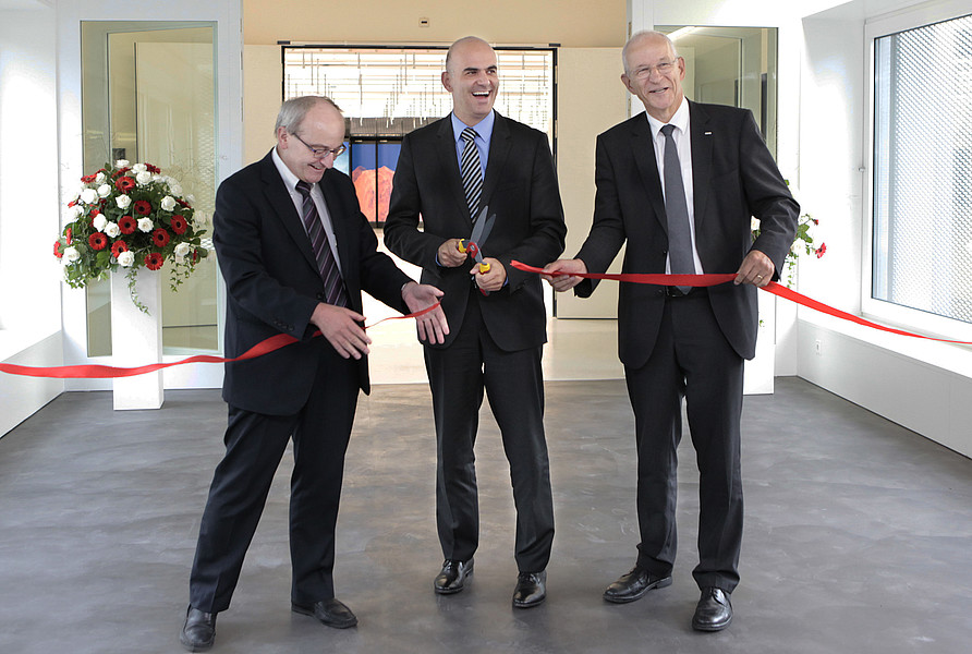 Federal Councillor Alain Berset, President of the ETH Board Fritz Schiesser and President of ETH Zurich Ralph Eichler cut the symbolic ribbon to officially open the new CSCS building. “The investment in this infrastructure is a long-term commitment for world-class research and part of an education and research policy that is designed to make a lasting contribution to the wellbeing of the country,” said Federal Councillor Berset.