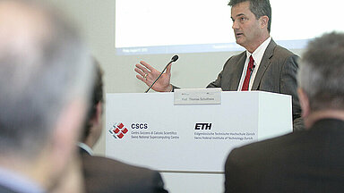 Scientists endeavour to solve complex problems with the aid of supercomputers. These days simulations come into play wherever experiments are no longer possible or traditional methods no longer suffice. They have a direct societal benefit: researchers can use simulations to predict the weather, evaluate natural hazards more effectively, model novel materials or aid medical diagnostics. High-performance computing supplements theory and experiments as a matter of course in practically all research disciplines. Since 2010 alone, the demand for computer time at the CSCS has almost doubled – in 2012 around 325 million computer hours were allocated among users.