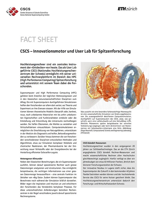 A new fact sheet on "CSCS - an engine for innovation and a User Lab for cutting-edge research" is now available.
