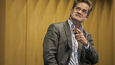 Monday’s plenaries were given by astrophysicist Volker Springel and climate scientist Bjorn Stevens. Springel, at the University of Heidelberg, showed highly complex simulations of the universe through the aid of some exceptionally impressive visualisations. Bjorn Stevens, from the Max Planck Institute for Meteorology, then stunned the audience with his assertion that “the climate system is not computable.” He demonstrated this by revealing just how many of the equations and variables that influence the climate system are still unknown in climate models, before walking the audience through an example of how mixing and microphysical processes influence cloud structure and rainfall. What is often forgotten, explained Stevens, is that climate models are no substitute for understanding the climate system. Rather, they are a tool to understand it better.