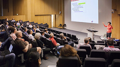Day two was all about materials science, opening with a plenary talk from Giulia Galli. The renowned materials scientist, who lectures at the University of Chicago, uses supercomputers to simulate the properties of novel materials that might one day be produced in the laboratory. For instance, these materials could produce more efficient solar cells or could be used in future microelectronics hardware.