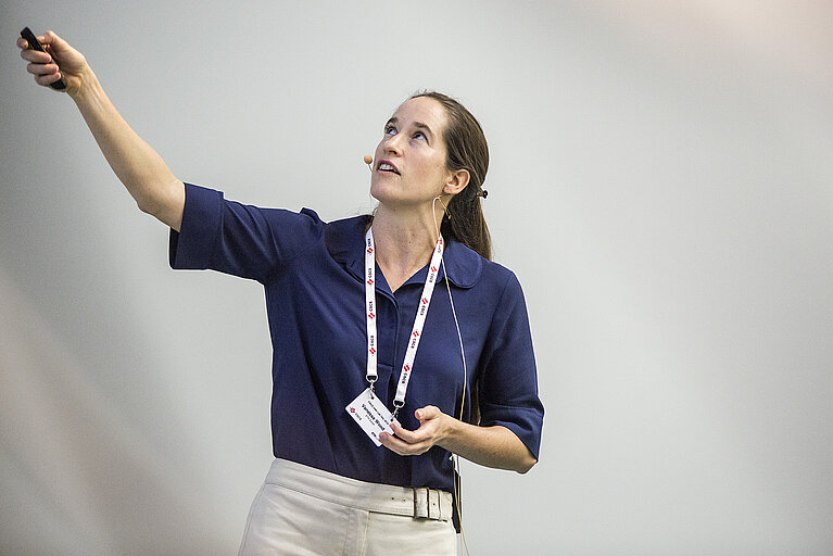The official program started with an inspiring lecture delivered by Vanessa Wood, professor at the Department of Information Technology and Electrical Engineering at ETH Zurich: “Adventures of an Experimentalist in the World of Large-Scale Simulations Big Data”. As an originally purely experimental scientist she explained why she started to expand her research team with experts in simulation and she gave her exciting point of view about simulations. During her study on colloidal nanocrystals and batteries, she realized that many phenomena had still been a mystery and couldn’t be explained by either experiment or theory. She then decided to explore the potential of simulation: “Simulations and visualisation tools can be a platform where different fields learn from each other.”