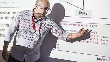 The plenary presentations of CSCS staff outlined the resources and services offered by CSCS and used by scientists from all major Swiss research institutions. Guillherme Peretti-Pezzi, group leader of Scientific Computing Support, gave an update on the application portfolio, explaining which popular codes are installed and regularly upgraded on CSCS machines. One of them is the Jupyter Notebook for Interactive Supercomputing, which as an open-source web application allows for easy data parsing and transformation, statistical analysis and data visualization, and even enables the user to run numerical simulations interactively. Nicholas Cardo, group leader of the HPC Operations Unit, shed light behind the scenes of supercomputing and focused on hardware: “We manage complexity and ensure that everything works”. He emphasized that CSCS is not just Piz Daint, but in fact covers several other systems as well, such as Phoenix for the high energy physics community, Blue Brain for EPFL researchers and Kesch and Escha for MeteoSwiss.
