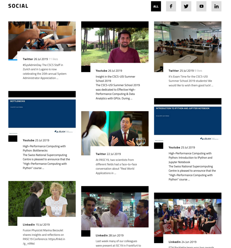 We want to use social networks as LinkedIn, Twitter, Youtube and Facebook more to keep in touch with our community and to make networking among us easier. For example our Youtube channel has more than 3’000 subscribers and almost 8’000 persons follow the recent developments of the centre on LinkedIn. Therefore, we use now a social media aggregation tool to enable the audience to perceive all the different messages in one place.