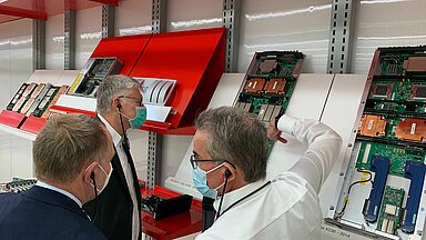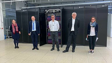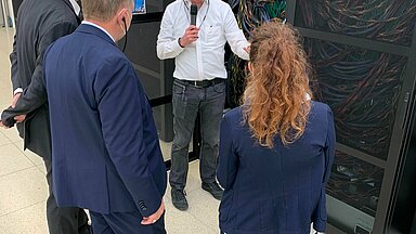 Last Thursday the Vice-President for Research made up for his visit on site. Together with his staff he visited the CSCS. Due to the measures taken to protect against the corona pandemic, only CSCS Director Thomas Schulthess and part of the management team welcomed the high-level visit. While respecting the safety measures, Günther and his staff visited the engine room and the newly updated exhibition before meeting for a joint exchange of views.
