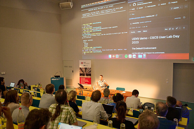 Following the scientific keynote lectures, the User Lab Day focused on the upcoming Alps infrastructure, which is expected to be put in service on April 1, 2024. Luca Marsella, Senior Software Engineer and Service Manager at CSCS, gave the first of a series of presentations and updated the community on the CSCS Service Catalog and policies. He pointed out that the infrastructure will change profoundly in order to achieve HPC and cloud convergence, but he also expressed his hope and confidence that users will see little difference in their day-to-day work and have a similar user experience as they are used to with the traditional HPC system of Piz Daint.