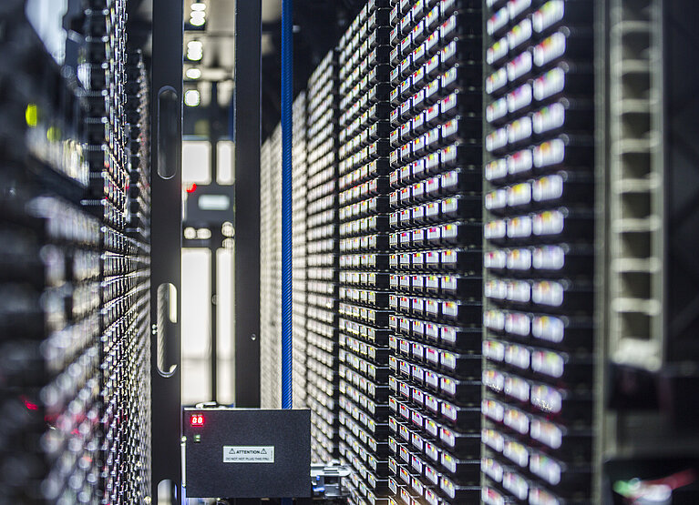 Pictures of the tape library (IBM TS4500) at CSCS, where the data will be archived.