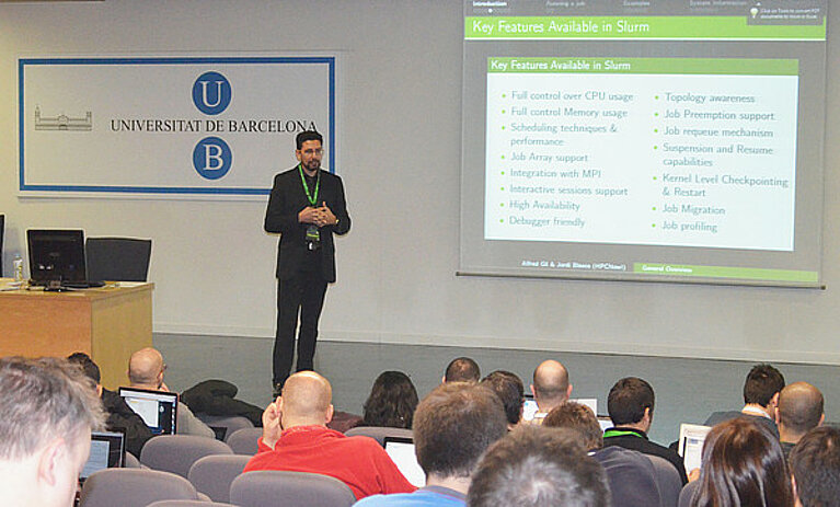 The conference was held at the University of Barcelona from 5th to 6th February, 2015. The training course consisted in 2 days: the first one was mainly dedicated for beginners-intermediate skilled SLURM system administrator and the second day for intermediate-advance. I had the chance to contribute with reviewing the materials presented and the Hands On Sessions proposed regarding the Slurm Training Session.