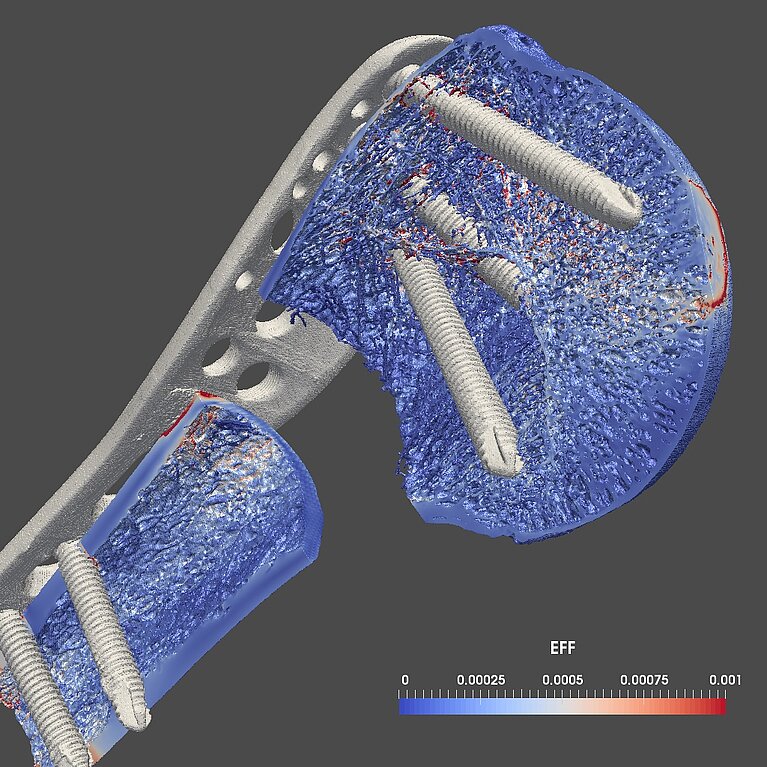 The goal of the project was to better understand and quantify the impact of such implants on the bones' micro structures. The approach selected by the scientists has been to run simulations of micro-finite element models with the ParOSol solver running on CSCS's Cray XC40 supercomputer. ParOSol is a scalable, memory efficient multigrid solver for micro-finite element analyses based on Computed Tomography images. Simulation outputs ranging from 50 to 500 million hexahedra required a dedicated parallel visualization plugin developed at CSCS. The plugin is integrated into the popular ParaView Visualization application running natively on the Cray Compute nodes, and using NVIDIA GPUs for the rendering tasks.