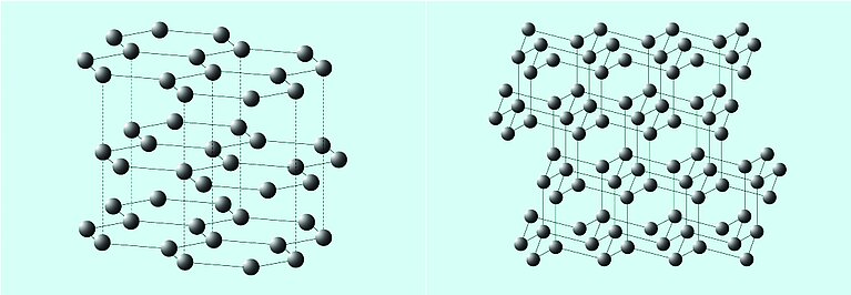 A material’s properties are determined by its crystal structure and stoichiometry (the quantity and type of elements from the periodic table that make up the material). Materials with the same stoichiometry but with different crystal structures can have completely different properties. One well-known example of these so-called allotropes is carbon, which occurs in two forms that could not be more different: diamond, a crystal with a so-called metastable crystal structure, a sparkling, crystal-clear and insulating gemstone (with the hardest naturally occurring crystal structure), and graphite, the electrically conductive black material, which is relatively soft and non-transparent.