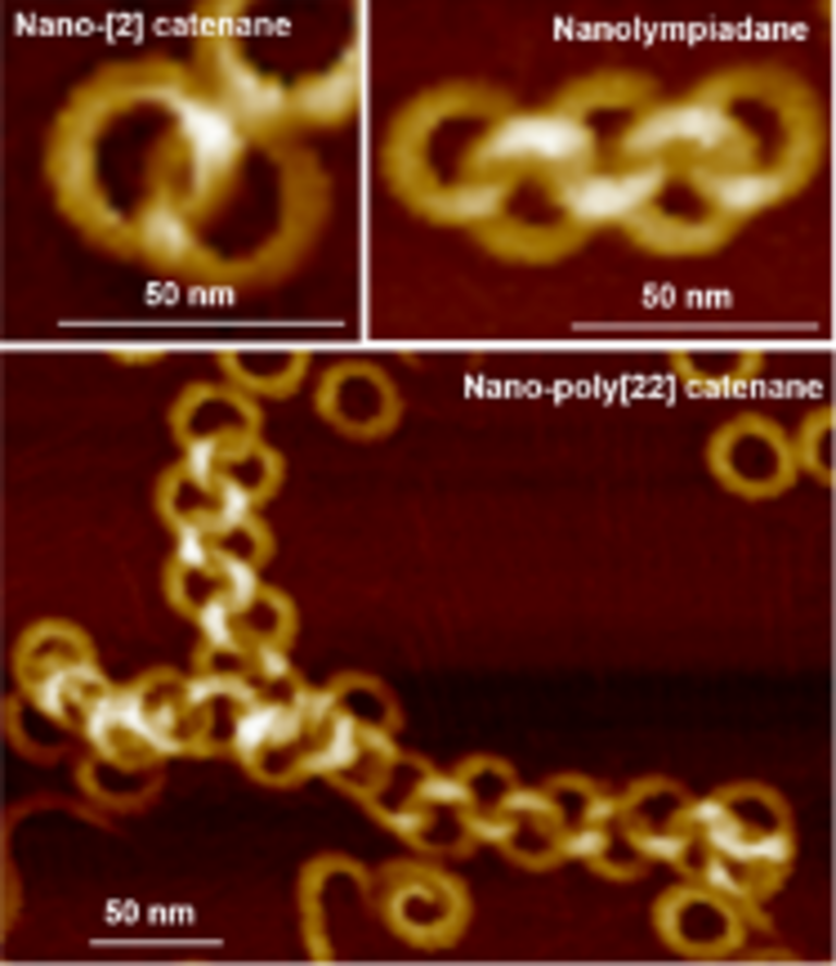 By altering the self-assembly conditions in laboratory experiments, the international research group has been able to create intricate structures, including a nano-catenane with five interlocked rings in a linear arrangement. The arrangement has been named “nanolympiadane” in homage to the [5]catenane system “olympiadane” first reported by Fraser Stoddart and colleagues in 1994, and the well-known symbol of the Olympic games. The groups were able to probe these impressive structures composed of nano-rings using atomic force microscopy, X-ray and neutron scattering.