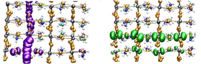 The rate of this recombination determines how efficiently the material can maintain and transport the harvested energy. For instance, the well-known perovskite CH3NH3PbI3 is stable in different crystal structures, including a tetragonal structure and an orthorhombic structure. One of those, the orthorhombic structure, shows a high electron-hole recombination rate, and therefore a correspondingly low charge carrier lifetime. As a result, it was found to have extremely poor charge transfer properties. In contrast, the tetragonal structure exhibits a far lower recombination rate and therefore much better — in fact outstanding — charge transfer capabilities.