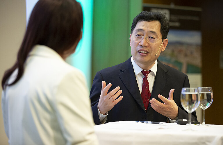 Before the dialogue could truly begin, Fang-Li took a few moments to share his research with the audience. He primarily focused on the recent revelation that non-breaking surface waves can generate strong turbulence in the upper ocean, which resulted in the development of new wave-tide-circulation coupled ocean models. “The wave-induced mixing in the upper ocean plays a dominant role. Unfortunately, the problem is that we did not consider this before in the ocean model,” said Fang-Li. Equipped with this new knowledge, he and fellow researchers are trying to produce more accurate predictive models that can be useful in the short-term for improving ship safety, typhoon predictions, and tourism protection; in the medium-term for disaster prevention and reduction, like floods and droughts, for the benefit of agriculture; and in the long-term as we monitor and prepare for the effects of climate change on global ecosystems and the vital fishing industry.
