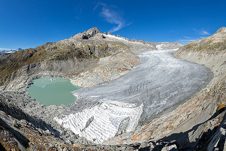 Around 115,000 years ago, the last glacial period in the earth’s history began. It was an eventful time, as glaciers advanced from the Alps onto the Swiss Plateau, retreated, and then advanced again. In the process, the powerful ice flows carved out valleys, such as the Rhône Valley, bringing rock debris — ranging in size from fine sediment to boulders weighing several tonnes — across the landscape with them. This debris, deposited as moraines, formed the lush, green foothills of the Alps. The heavy boulders, known as erratics, can be found spread out across the Swiss Plateau, in Alpine valleys and in the Jura Mountains.