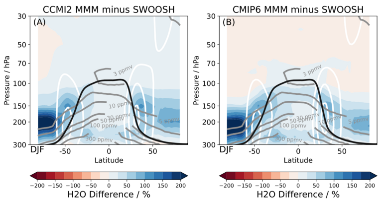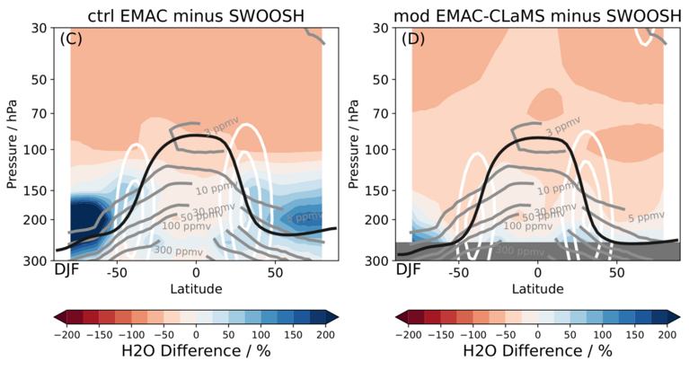 But the effort paid off: While the transport schemes used in CMIP6 and CCMI-2022 both showed severe bias resulting in an incorrect excess of stratospheric water vapour, the team could almost completely remove this bias using the Lagrangian scheme.