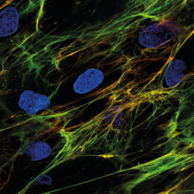 In order to test whether the peptide indeed binds only to un-tensioned fibres, the researchers added to the cell culture medium a special optical ‘nano-probe’ they had developed. This probe is only usable in cell cultures, where it changes colour to indicate the tensional state of the fibres. In addition, the researchers tagged the synthetically produced peptide with an additional fluorophore in order to visualize where it binds in cell culture.