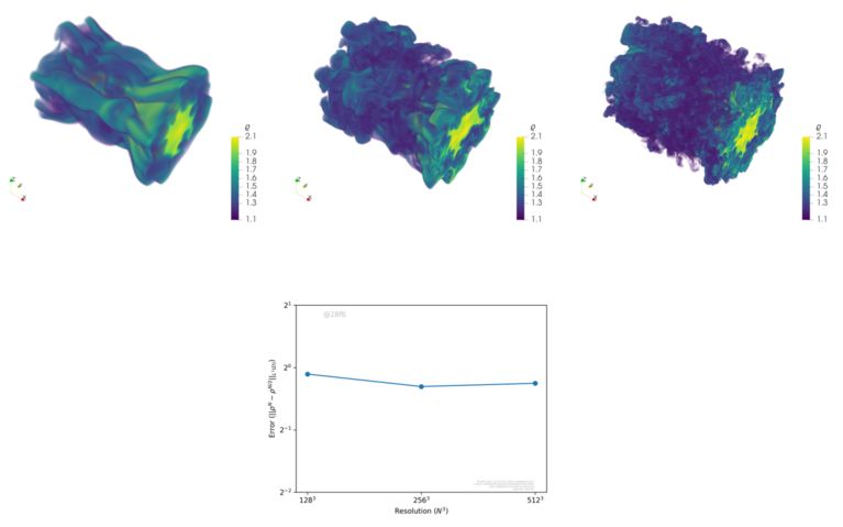 “This is the basis of statistical solutions,” explains Mishra. “If individual realizations of experiments do not converge, you look at averages of these quantities instead. These then begin to get more and more convergent.” Simply put: “When representing turbulent flows, it’s the details that destroy you. That’s why with averages you start to see more structure.” This effect not only applies to a quantity itself, like density, but also to its variance and its probability distribution, as Mishras group has established.
