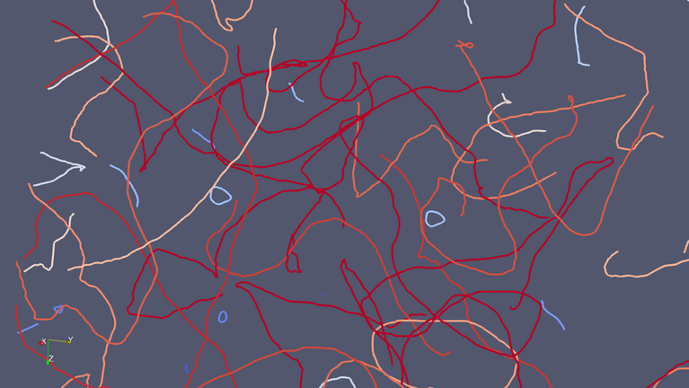 "In order to study this, we need to output the positions of string cores in the lattice, but this generates an unreasonable amount of data," Correia explains. The researchers therefore enlisted the support of CSCS software engineer and visualisation specialist Jean Favre to combine the simulation code with the visualisation code (ParaView Catalyst) so that both work with the same data stored in computer memory. "The in-situ visualisations were used to filter and output only the grid cells penetrated by strings and, in each cell, which cell faces are penetrated," says Correia. "This speeds up the simulations considerably and reduces the amount of data generated by the calculation of 20483 grid points in the three-dimensional lattice by up to four orders of magnitude for a radiation era test case."