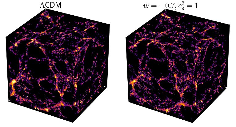 Also, the team’s new simulation model, named “k-evolution”, uses deep learning to detect dark energy. Specifically, the team employs a so-called convolutional neural network (CNN). Such a network maps layers of mathematical functions onto other functions to filter and re-filter the information and ultimately recognize patterns and objects — such as galaxies in space. The resulting galaxy distribution can then be used to infer the distribution of dark matter and dark energy. “Galaxies formed where dark matter is very dense,” Kunz explains. “So, by observing their distribution, we can indirectly trace dark matter and dark energy.”