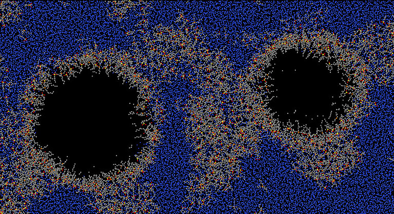 To obtain such accurate simulations, a crucial role is played by the simulation conditions, which are a combination of system size, preparation protocol, pressure, temperature, and other mathematical parameters whose choice greatly relies on experience. Another difficulty when studying the interaction between molecules lies in parametrising the so-called interatomic force fields. These mathematical models describe the interaction between molecules and provide the physical basis of molecular dynamics computations. “The force field has to describe your system well for the results to be accurate and make sense,” explains Cabriolu. Interestingly, the physicist found the correct setup for the bubble system by pure luck — while looking for something different.